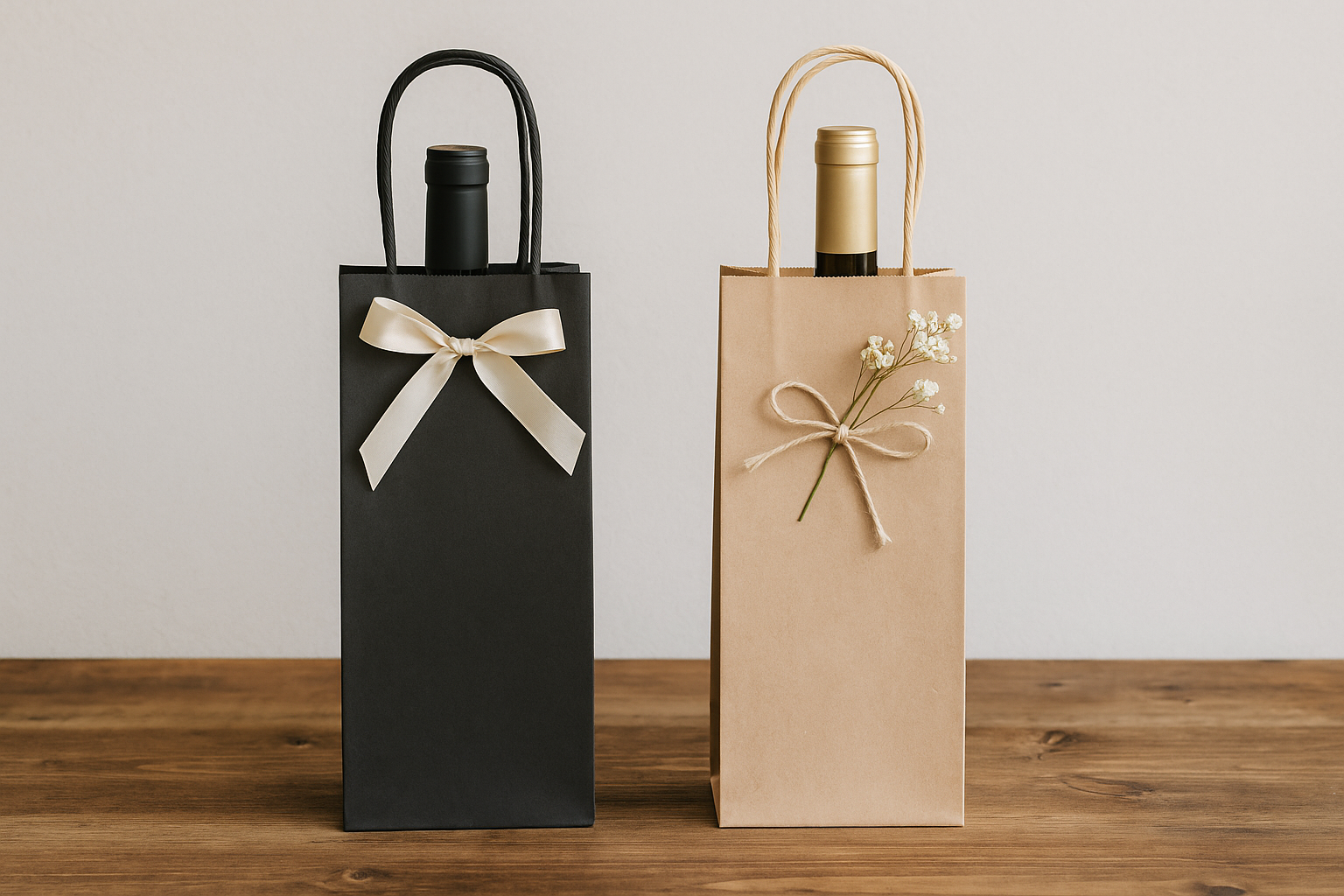 Vnašom online obchode nájdete papierové vrecúška na víno v rôznych štýloch: elegantné pre mužov, decentné pre ženy a univerzálne prírodné varianty. Vyberte si tašku, ktorá doplní váš darček na mieru.