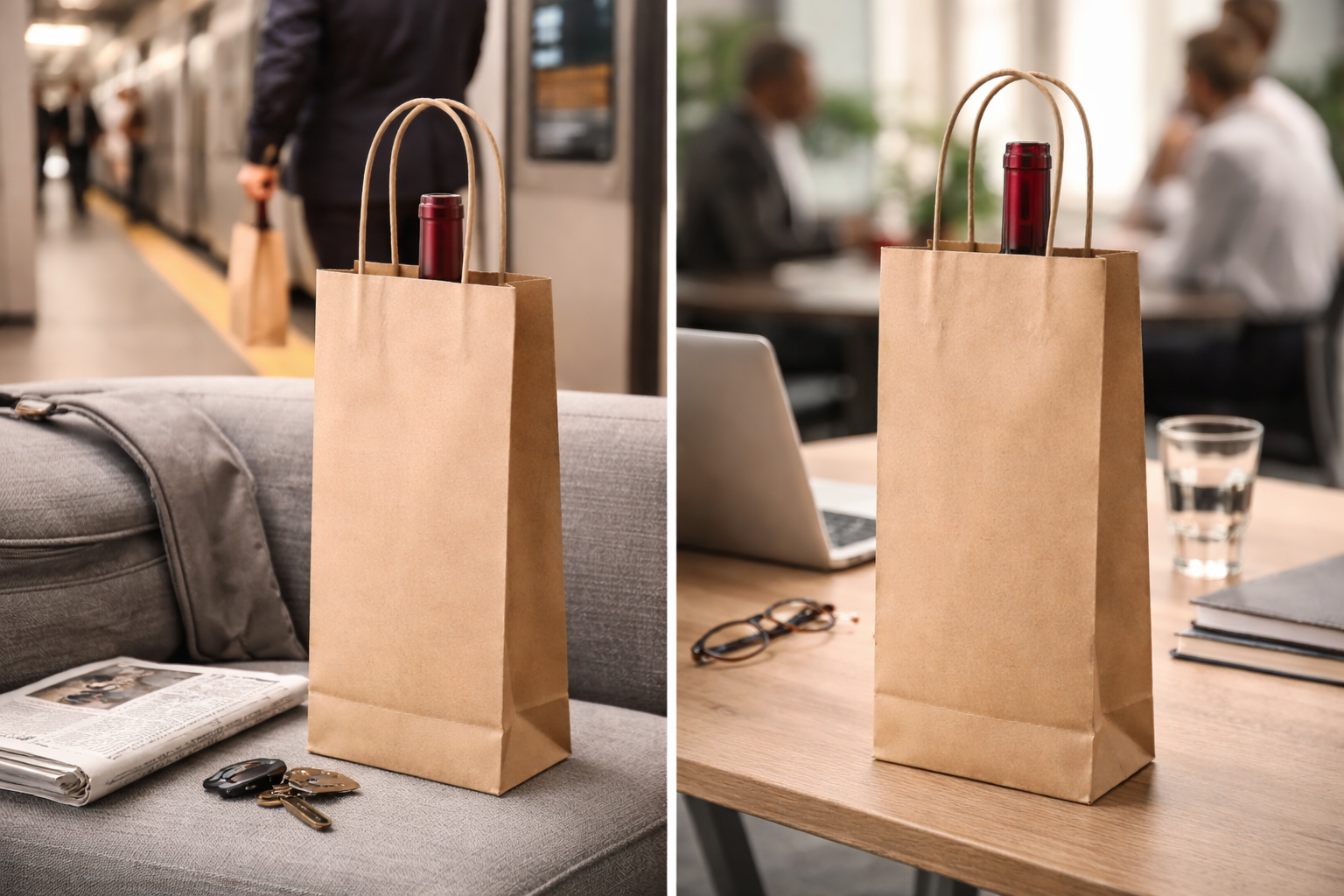 Nie každá fľaša vína ide na oslavu. Niekedy si ju zákazník kúpi na večeru, na víkend alebo len tak "na doma". V takom prípade sa výrazná darčeková taška môže zdať prehnaná. Jednoduchá papierová taška bez výraznej potlače je praktickejšia a prirodzenejšia.